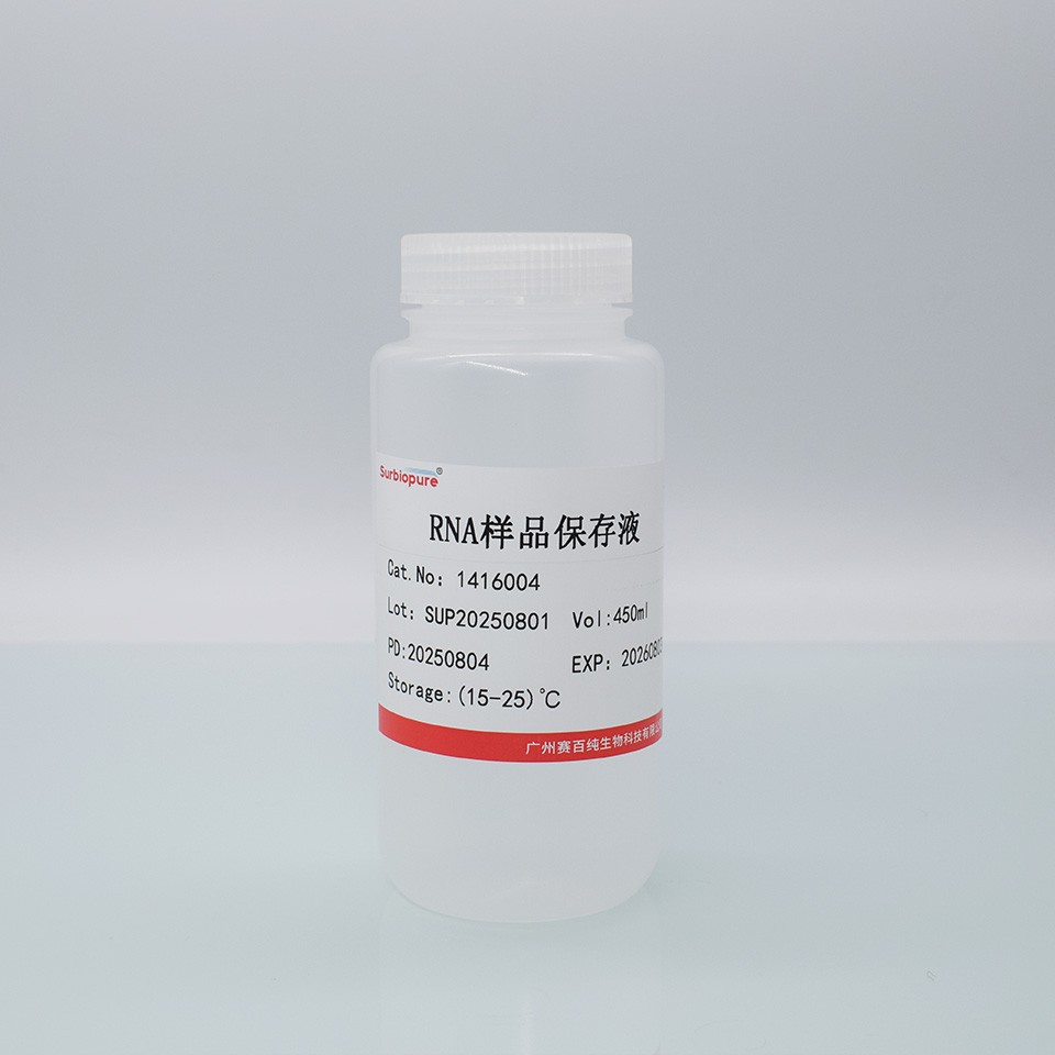适用于动物组织(心,肝,肾,肌肉,睾丸,脑,脾等)、培养细胞、RNA 病毒、果蝇、细菌、白细胞、全血、一些植物组织等。RNAlater 是一种水相的,无毒的组织保存液体,可以迅速渗入新鲜组织细胞的胞浆中,在非冻状态下原位稳定和保护细胞内的RNA。取下组织薄片后立刻浸入RNAlater保存并不影响将来提取RNA的质量和数量。RNAlater消除了RNA样品需要立刻处理或者必须液氮保存的不方便。浸入RNAlater后,新鲜组织细胞中RNA可以完好的在37˚C下保存一天, 在25˚C下保存一周, 4˚C下保存一个月, 在-20˚C或-80˚C下长期保存。RNA 病毒样品(如HCV 和HIV)可在37˚C保存一个月。