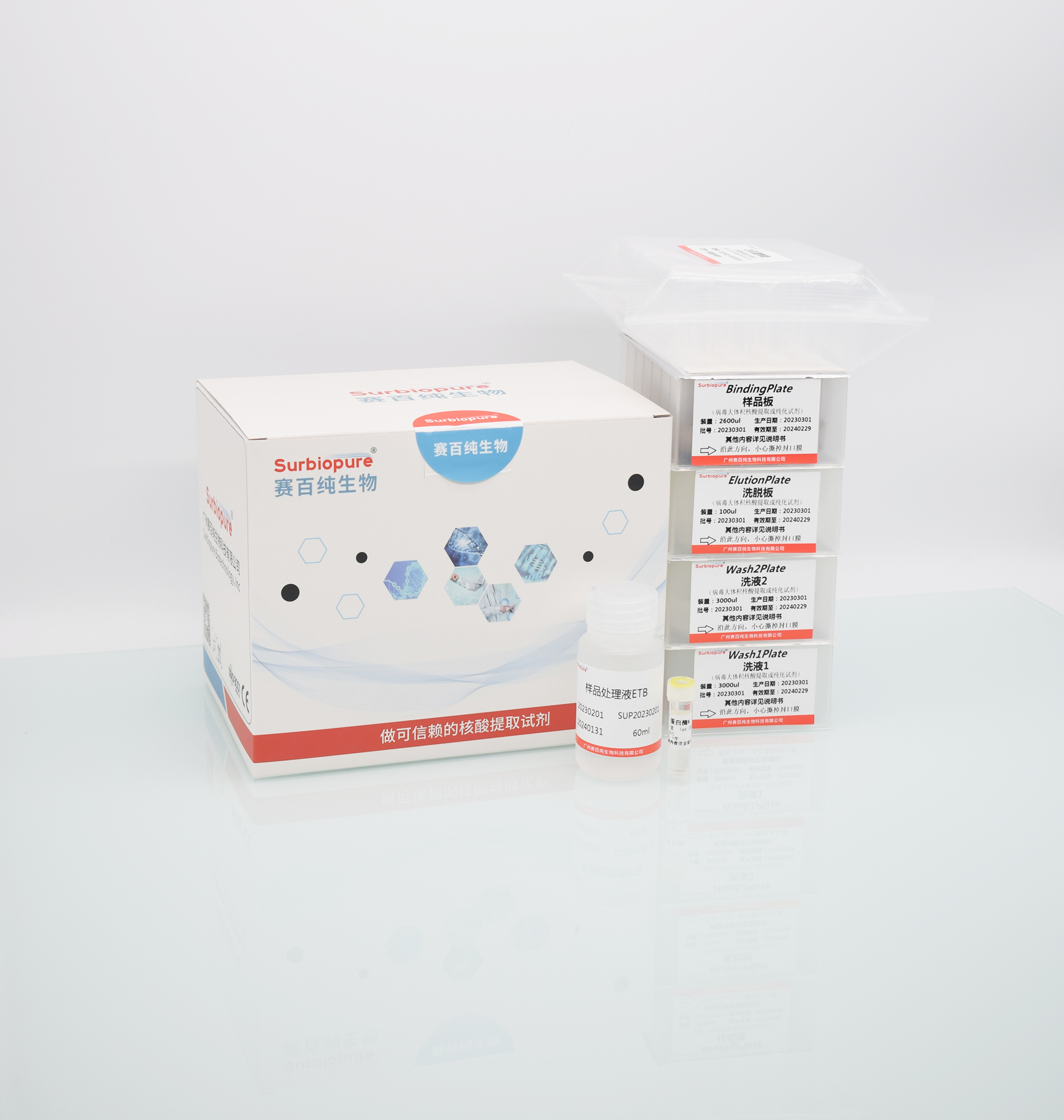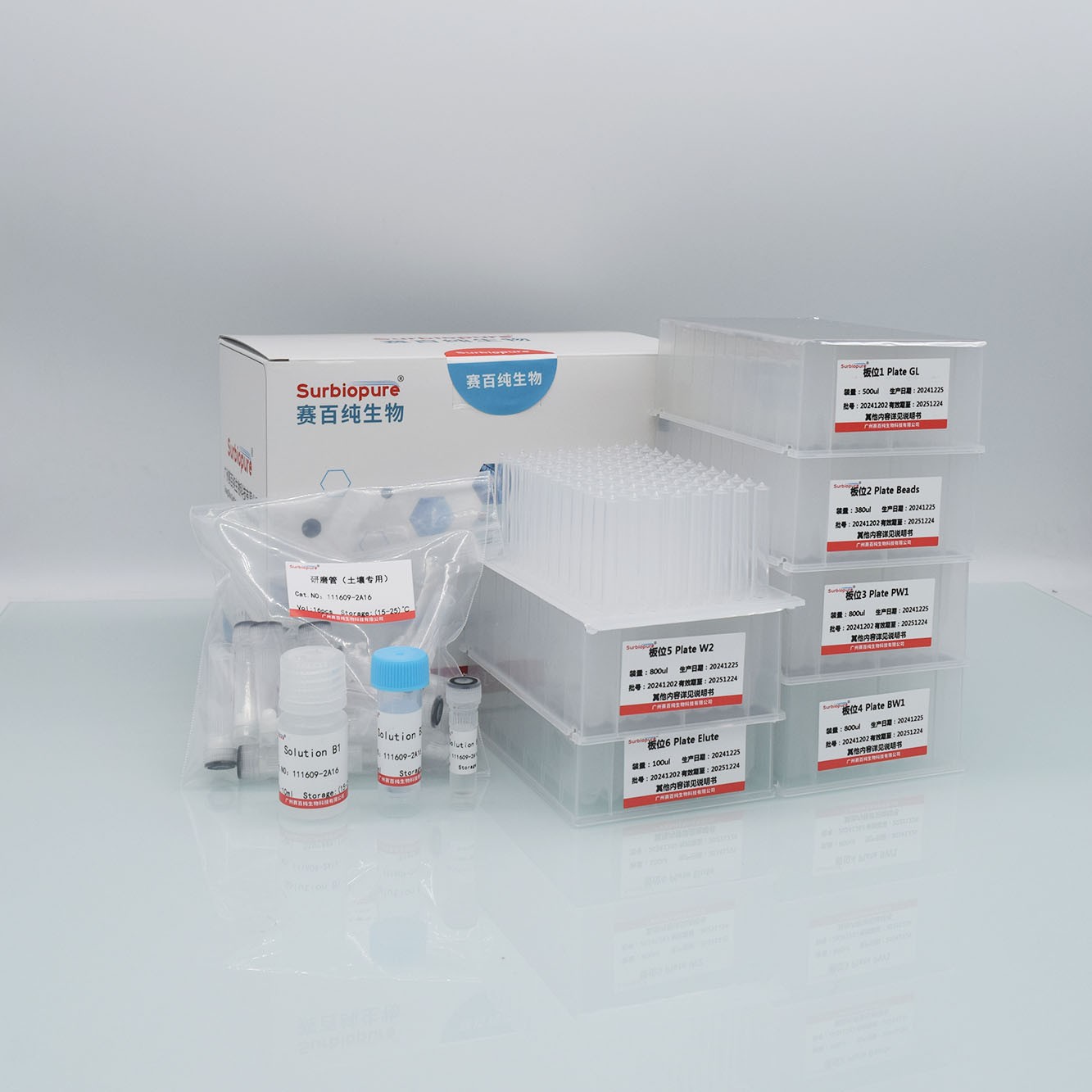 【预期用途】本试剂盒可从 250 - 500mg 多种土壤、粪便样本中提取高纯度 DNA,裂解液与研磨管协同作用充分裂解样本释放 DNA,独特沉淀液可以有效去除腐殖质、蛋白质、色素等杂质,磁珠在结合液与洗脱液作用下实现 DNA 快速分离纯化。整个实验过程无需酚/氯仿等有机试剂进行抽提,操作简便,提取的 DNA 浓度、纯度高,完整性好,无蛋白质、盐类及其他杂质污染,可用于酶切、PCR、文库构建、Southern 杂交、荧光定量 PCR、芯片分析、一代及二代测序等多种下游科研检测实验。